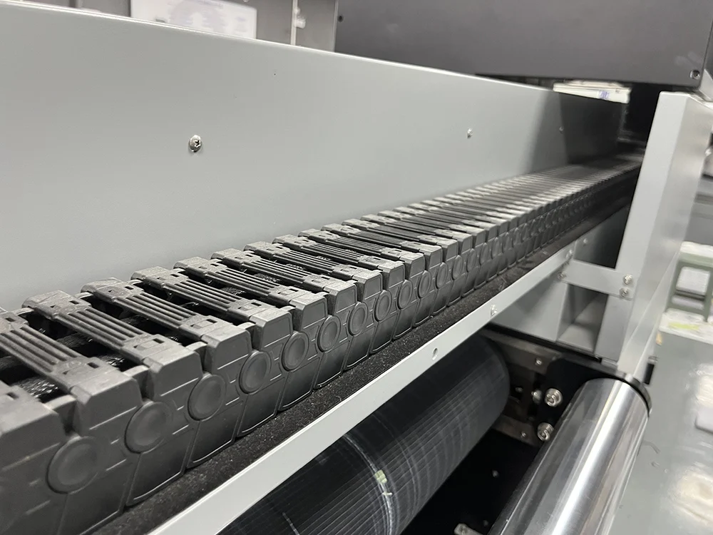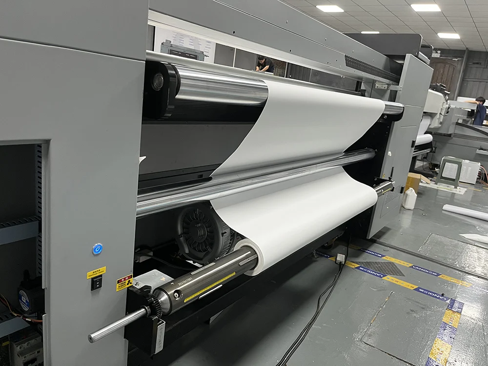 Imprimante hybride UV KD2500-Largeur d'impression de 2500 mm, avec configuration d'impression sur panneau, 4 têtes Ricol G6, blanc, couleur, vernis